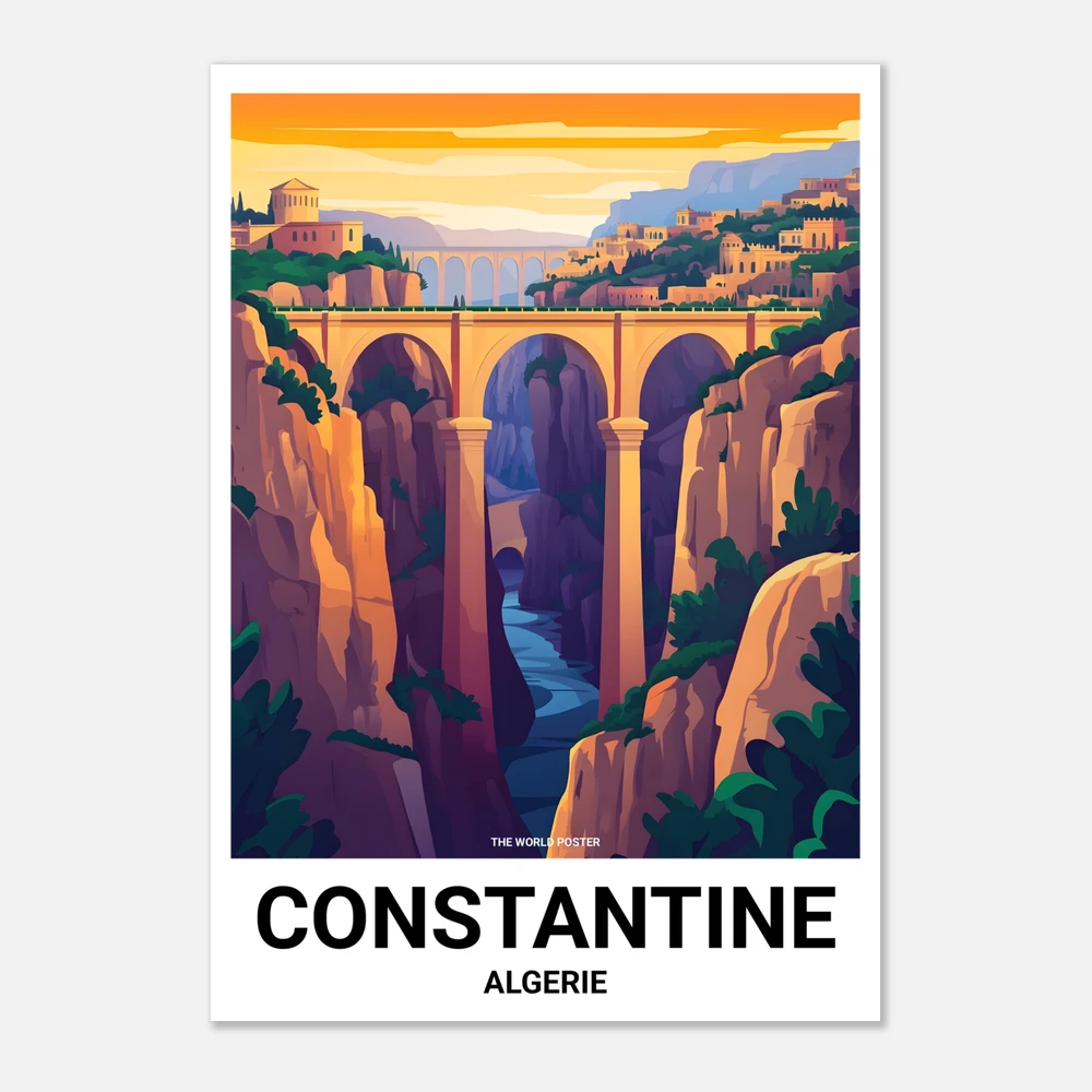Odkryj spektakularne piękno Konstantyny, miasta mostów wiszących i unikalnej architektury, dzięki naszemu eleganckiemu plakatowi. Ten wydruk uchwyca historyczną i kulturową esencję Konstantyny, zapraszając Cię do podziwiania jej imponujących wąwozów i bogatego dziedzictwa. Dodaj odrobinę algierskiej elegancji do swojego wnętrza dzięki temu niezbędnemu plakatowi!