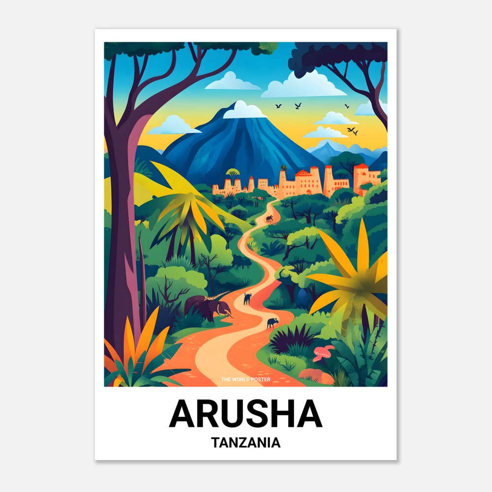 Découvrez l'essence d'ARUSHA avec notre magnifique poster qui capture la beauté et la culture vibrante de cette ville tanzanienne, porte d'entrée vers les parcs nationaux et le mont Kilimandjaro. Cette affiche d'Arusha est un hommage à la richesse culturelle et aux paysages à couper le souffle, parfait pour embellir n'importe quel intérieur. Ne manquez pas l'opportunité d'ajouter une touche d'Afrique à votre décor !