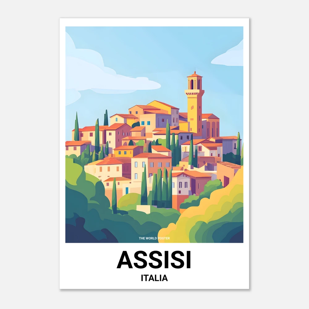 Plongez dans la sérénité d'Assise, joyau de l'Ombrie, avec notre magnifique poster représentant cette ville emblématique. Connue pour sa riche histoire et son architecture médiévale, Assise incarne l'esprit de saint François et séduit par son charme intemporel. Ajoutez cette affiche unique à votre décoration pour une touche d'élégance et de culture !