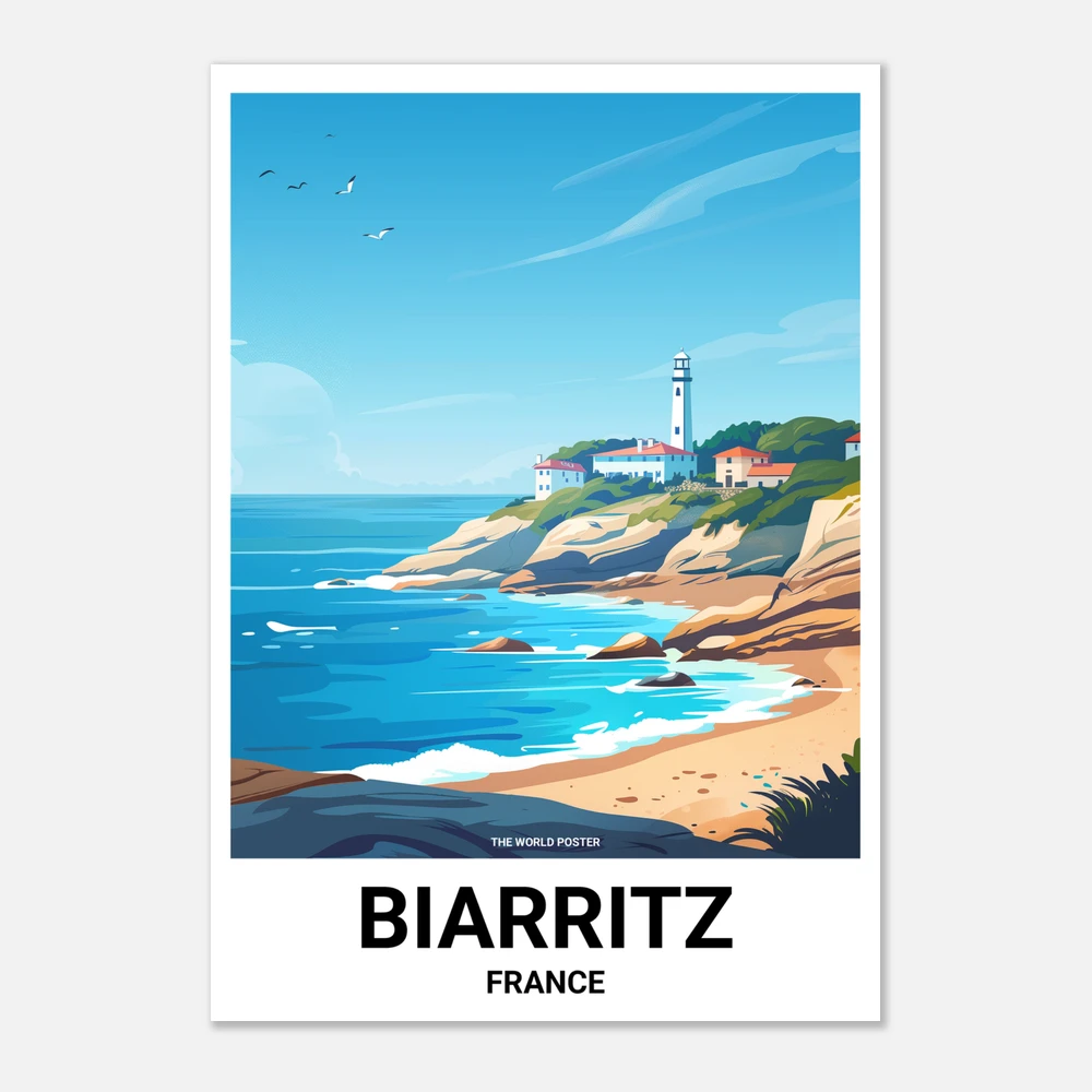 Plongez dans l'élégance de la Côte Basque avec notre affiche de BIARRITZ. Ce poster unique capture la majesté de Biarritz, de sa Grande Plage à son patrimoine basque inégalé. Parfait pour ajouter une touche de sophistication et d'évasion à votre intérieur !