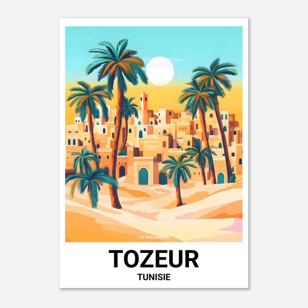 Découvrez notre poster de TOZEUR, un hommage visuel à cette oasis emblématique de la Tunisie, connue pour ses magnifiques palmeraies et son architecture unique en briques de terre cuite. Cette affiche vous plongera dans la richesse culturelle et les paysages enchanteurs de Tozeur, ajoutant une touche d'exotisme à votre décor. Ne manquez pas l'opportunité d'apporter un morceau de cette destination magique à votre intérieur !